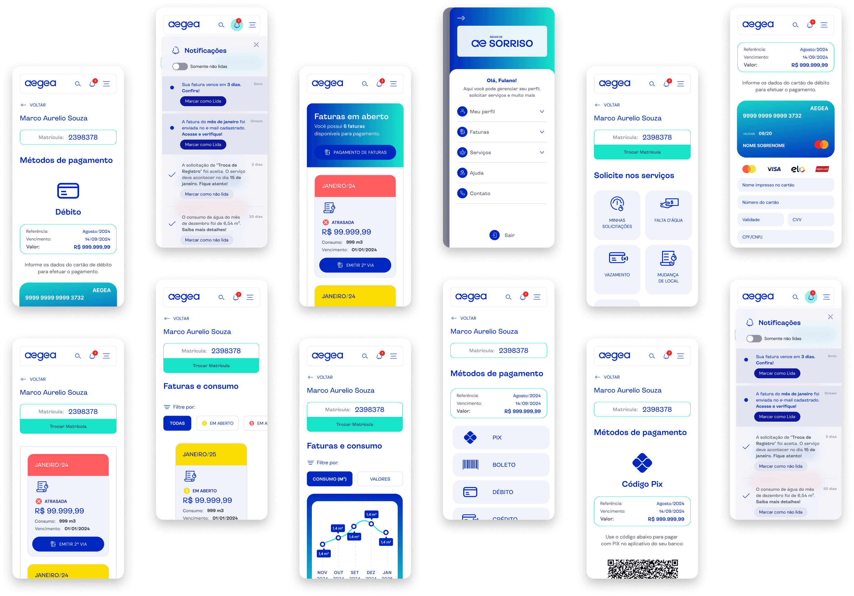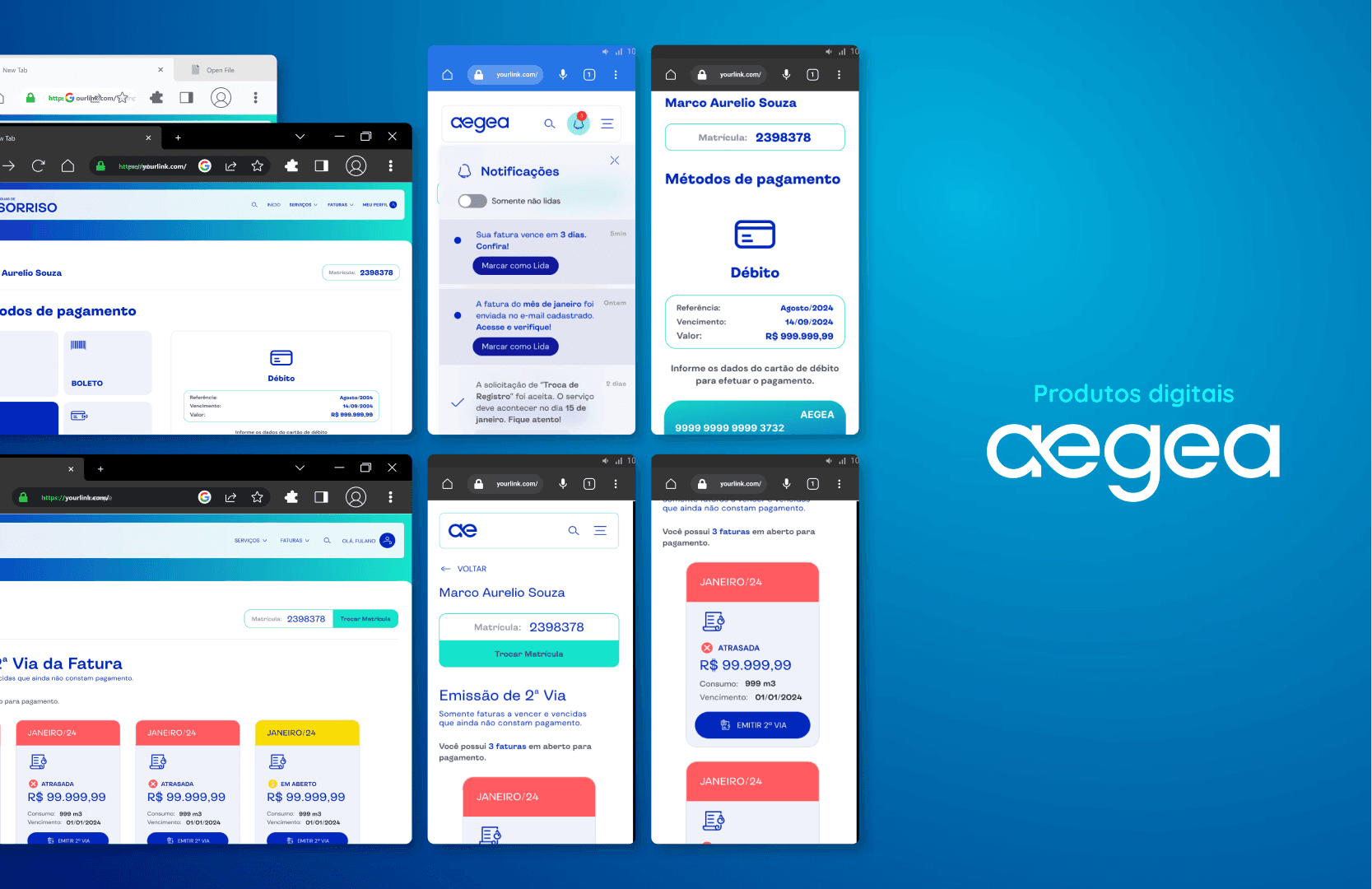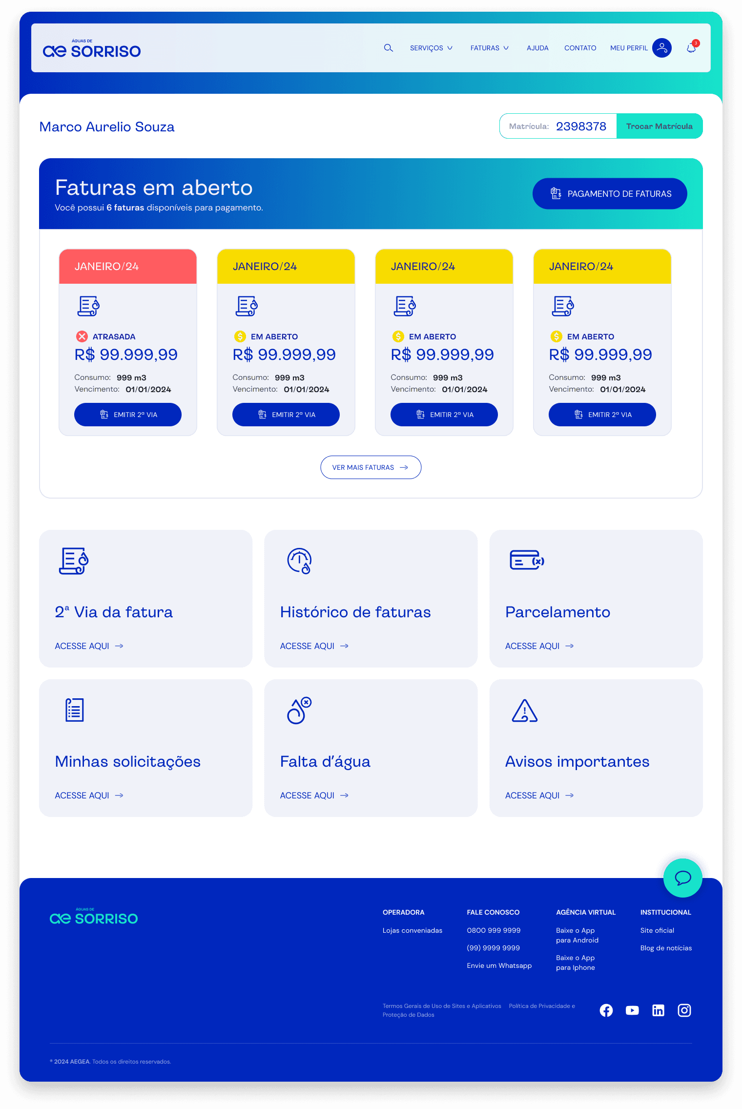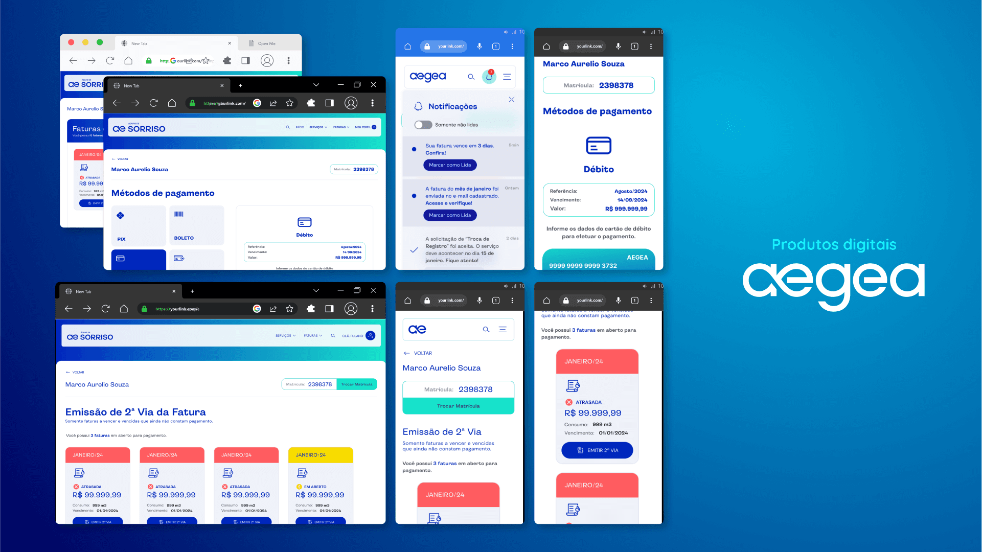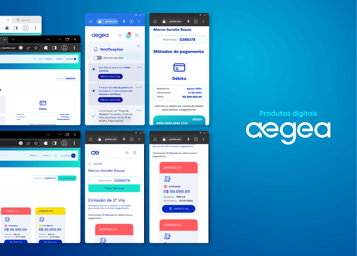 A Aegea é uma das maiores companhias de saneamento do Brasil, e buscava melhorar a experiência digital de seus usuários, especialmente no acesso a informações sobre consumo, faturas e atendimento. O projeto envolveu o redesenho do portal e app, com foco em tornar os serviços mais intuitivos, acessíveis e alinhados às necessidades reais dos clientes.