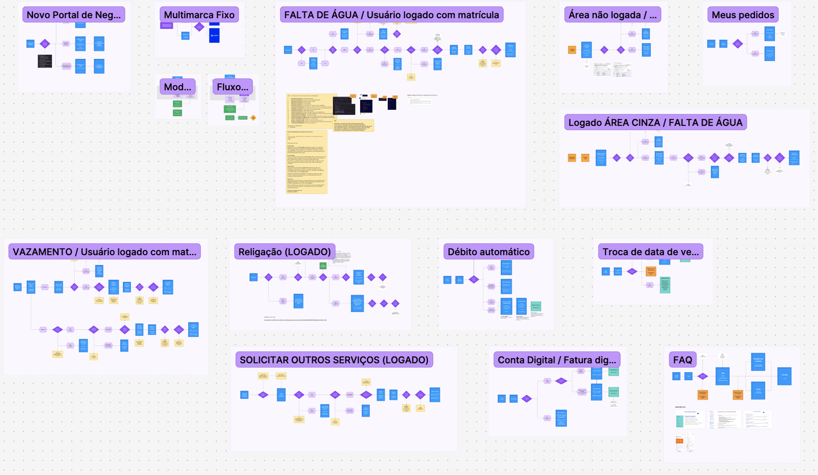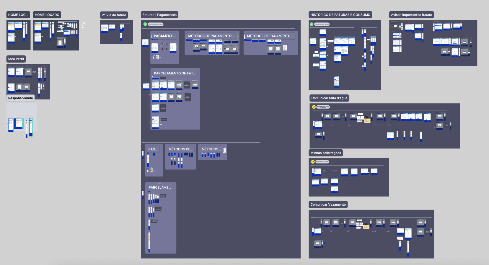 O projeto começou com uma fase de imersão profunda para compreender os desafios do produto e as necessidades dos usuários da Aegea. Foram realizadas reuniões com stakeholders, análise de métricas existentes e estudo do comportamento dos clientes para mapear dores e oportunidades. A partir desses insights, consolidamos um briefing detalhado que orientou todas as decisões de design, definindo objetivos claros, prioridades do negócio e expectativas para a experiência digital, garantindo que cada etapa do projeto estivesse alinhada às metas estratégicas da empresa.